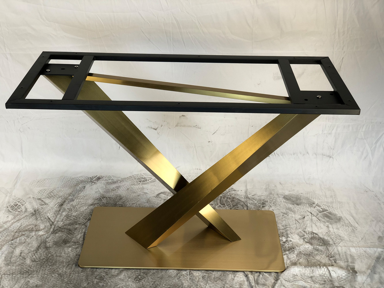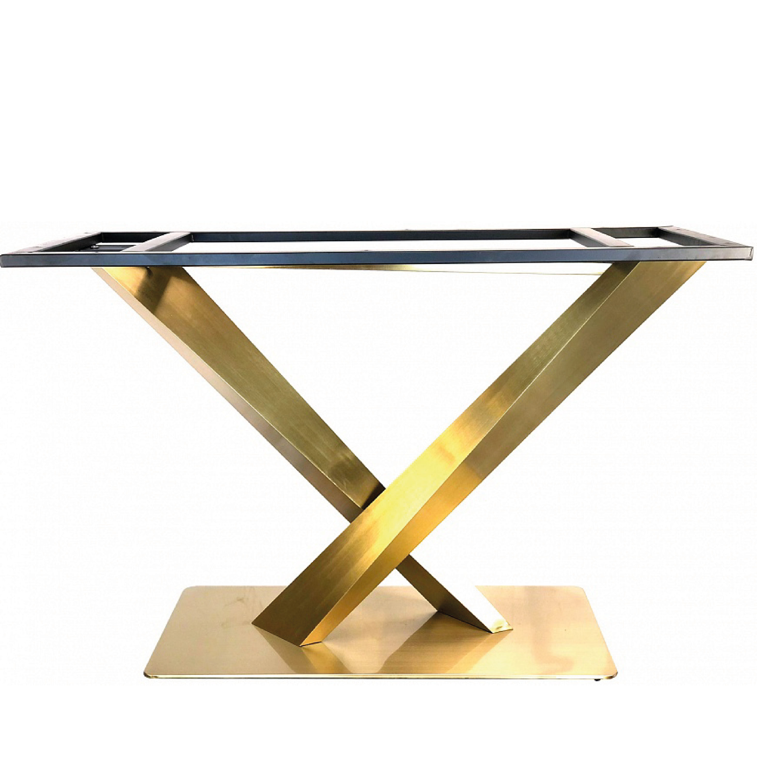 Подстолье из нержавеющей стали 1295EM Лаковое покрытие. цвет "под золото" (нитрид титана) Глубина основания: 40 см Длина основания: 80 см Высота: 72 см Размер верхней части: 112,5х50 см. Рекомендуемый размер столешницы: 140х90см. Заказать подстолье для своего проекта в городе Долгопрудном, вы можете связавшись с нами любым удобным для вас способом - по телефону, по электронной почте или заполнив форму обратной связи на нашем сайте.